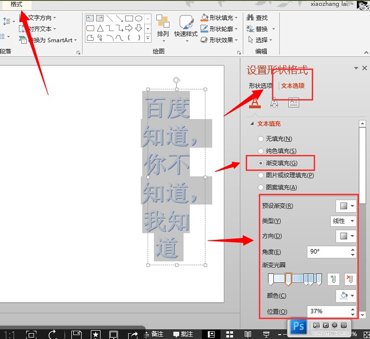 步驟2:選擇屬性欄上的【顏色】-【使用遞減的顏色】,設置好兩個相互漸變的顏色,最好是同類色系的漸變,如大紅色和深紅色。