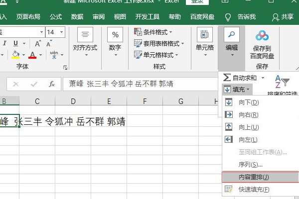 點(diǎn)擊“開始”-“編輯”-“填充”-“內(nèi)容重排”。在彈出的對(duì)話框中點(diǎn)擊“確定”。這樣就把B2單元格內(nèi)的數(shù)據(jù)根據(jù)B列列寬分成多行了。詳細(xì)步驟: