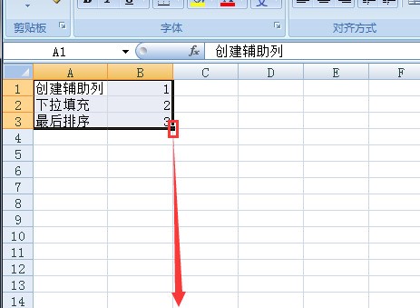 3、鼠標(biāo)拖動(dòng)B列邊線,調(diào)整列寬為分行后數(shù)據(jù)寬度。