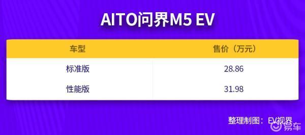 【EV視界來自報道】9月6日,AITO品牌旗下首款純電動SUV——問界M5 EV正式上市,新車共推出2款車型,售價28.86-31.98萬元。新車定位純電中型SUV的問界M5 EV提供單電機后驅與雙電機四驅兩種版本可選,CLTC續航里程分別為620km與552km。