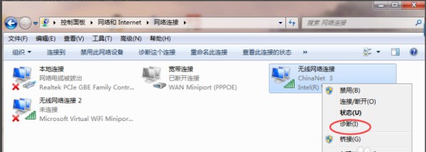 2. 右鍵無(wú)線網(wǎng)絡(luò)連接,選修復(fù)