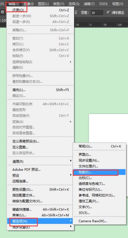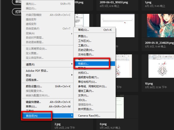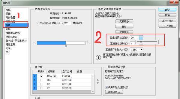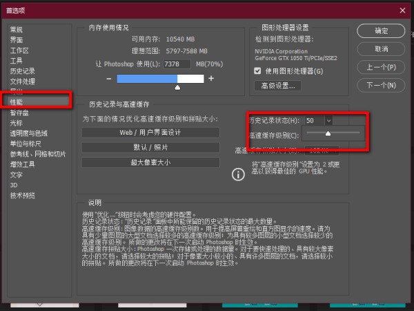 4:在調(diào)出的“性能“面板上選中”歷史記錄狀態(tài)“進行始調(diào)整即可