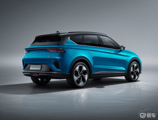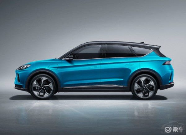 車身部分的線條十分飄逸,車窗外側進行了熏黑處理。拼色的花瓣狀輪轂顯得十分動感。