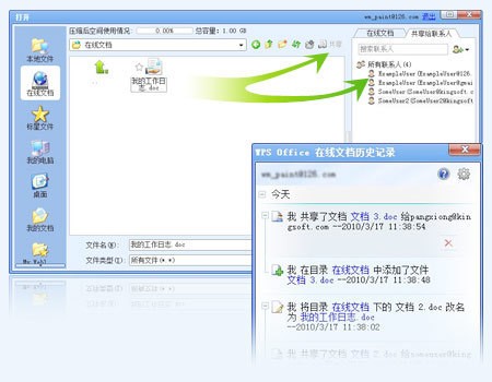 在團隊工作中,大家集思廣益可以收獲更好的解決方案。當使用 WPS Office 2010 與其他同事進行合作時,可以一鍵輕松共享,與他們編輯處理同一個文件,甚至可以身處各自不同的地方。
