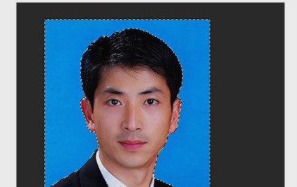2、接著選魔棒工具,點一下證件照的背景,直接就把背景色選中了;