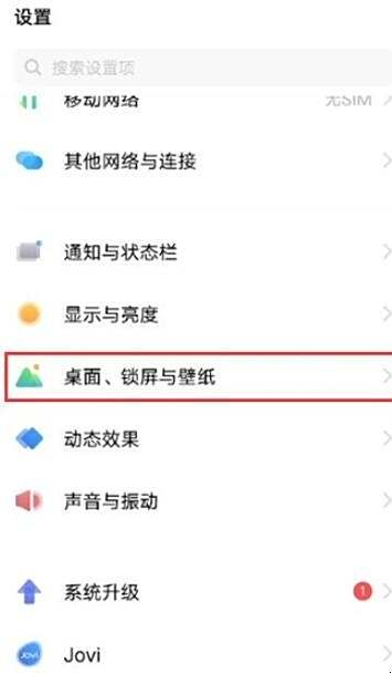 在設(shè)置菜單中,通過上下滑動或搜索功能找到“桌面、鎖屏與壁紙”選項。該選項通常位于設(shè)置列表的中部,負責管理屏幕顯示與鎖屏樣式。