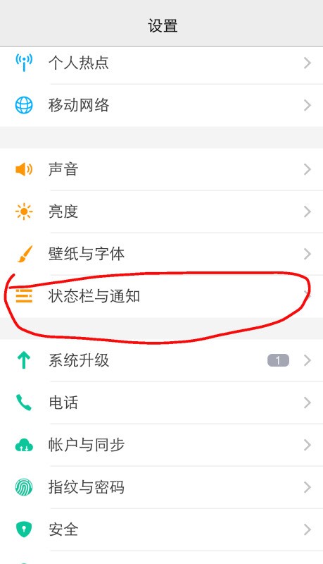 2、進入設(shè)置后,再點擊“狀態(tài)欄與通知”進入。