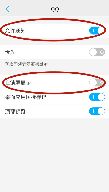 4、進入后,當前只打開了允許通知,并未開啟在鎖屏上顯示。