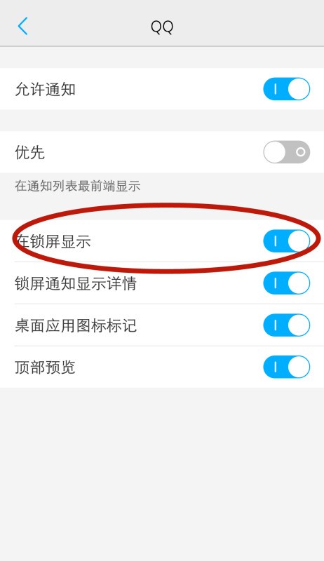 5、點擊將“在鎖屏顯示”開啟,開啟后,退出設(shè)置。