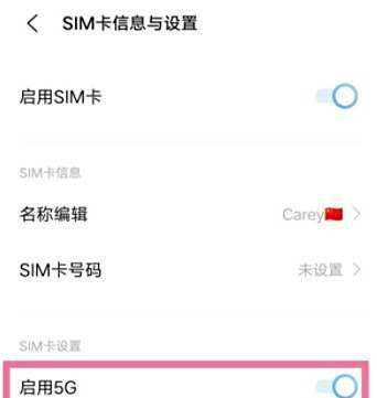 啟用5G功能在SIM卡信息與設(shè)置頁面中,找到【啟用5G】右側(cè)的按鈕,點(diǎn)擊開啟即可。