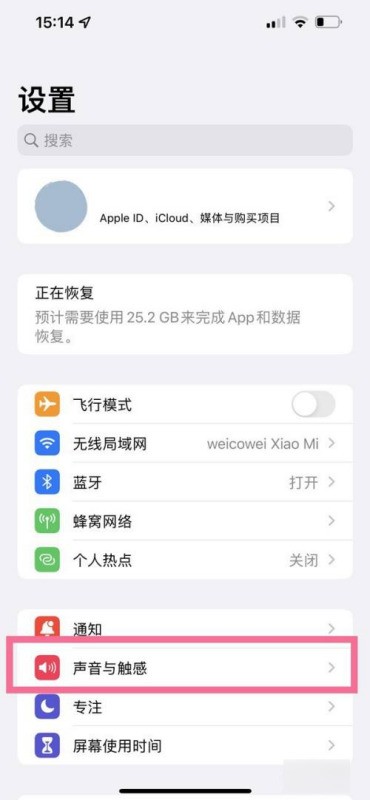 在設置列表中滑動查找并點擊“聲音與觸感”選項。該選項位于設置菜單的中上部,負責管理設備的音效、觸感反饋及振動模式。