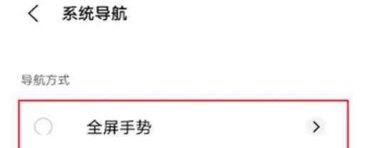 選擇全屏手勢模式:進入系統導航界面后,在彈出的選項中找到【全屏手勢】功能并點擊選擇。
