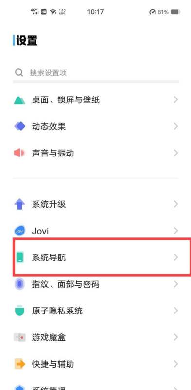 開啟設置并進入系統導航:首先打開vivo手機的“設置”功能,在設置界面中找到并點擊【系統導航】選項。