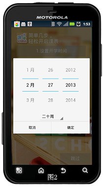 設置開學時間(如圖2):輸入開學時間,選擇本學期總周數,確定。