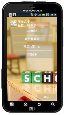 下載安裝:首先可在各大應用市場上下載安裝。安裝后打開應用,初次進入會自動開始新手教程(如圖1),選擇手動輸入(如有班級共享碼可直接輸入或跳過,也可選擇“班級共享中心”找到所在學校和專業下載已有課程)。