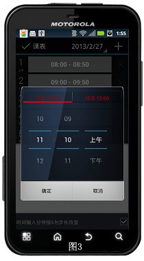 設置上課時間(如圖3):系統默認上下午各2次課,可以根據實際情況直接點擊修改或點擊右上角“+”添加或點擊右側“×”刪除上課時間(勾選下文“時間輸入分鐘按5為步長改變”可以快速輸入!)。修改完成后點擊左上角“√”確認保存(別忘了!)。