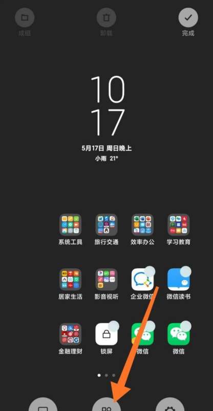 步驟1:進入桌面編輯模式在手機桌面,用兩根手指向中間滑動,觸發桌面編輯界面。