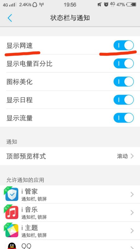 2.打開狀態欄與通知,找到顯示網速,然后將其打開就可以了