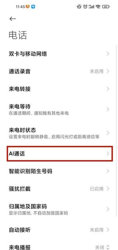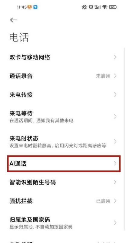 進入AI通話設置界面在撥號界面點擊右上角「設置」圖標,進入撥號設置頁面后選擇「AI通話」選項。此步驟為后續自定義操作的基礎入口。