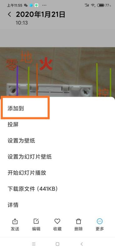 打開圖片--選擇“更多”,在選擇“添加到”,