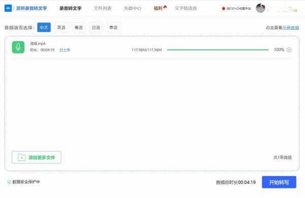 第3步:上傳成功后,點擊右下角的“開始轉寫”;