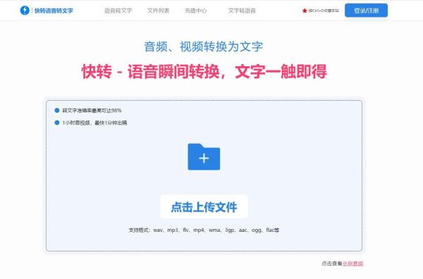 快轉語音轉文字網站是一個網頁端的在線語音轉文字平臺,支持音頻及視頻文件轉寫,語音識別準確率可達98%。