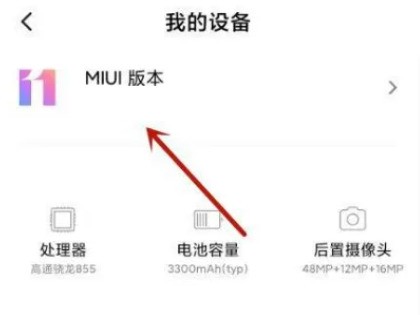 3、在我的設(shè)備頁面,點擊界面上方的MIUI版本。
