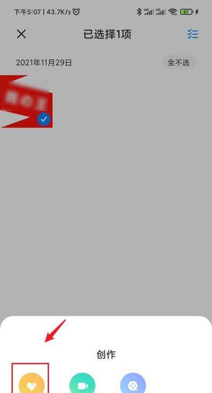 步驟2:點擊“創(chuàng)作”按鈕在照片選擇界面底部或右上角,找到并點擊創(chuàng)作選項(圖標可能為畫筆或魔法棒樣式)。