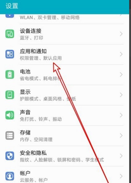 1、首先要先打開手機,進入手機的設置應用,如下圖所示,找到“應用和通知”的選項,并點擊這個選項。