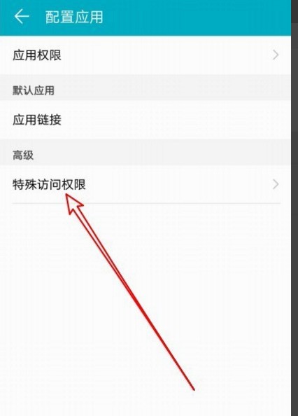4、就會打開配置應用的頁面,如下圖所示,這時就可以點擊“特殊訪問權限”這個選項。