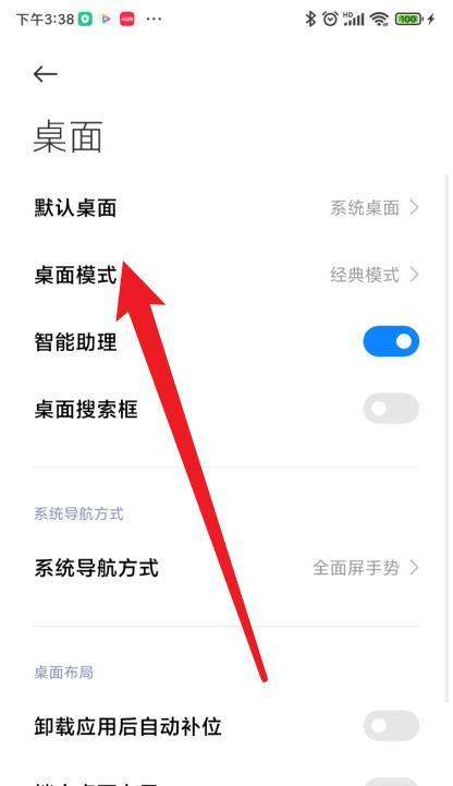 進入桌面模式設置:在桌面設置頁面中,繼續點擊桌面模式選項。此功能模塊集中控制桌面的動態效果、手勢操作等高級設置。