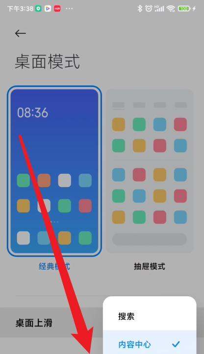關閉上滑內容功能:在桌面模式設置界面中,找到與上滑內容相關的開關選項(可能標注為“上滑搜索”“內容中心”等),將其切換至關閉狀態。部分系統版本需先點擊“更多設置”才能找到該選項。