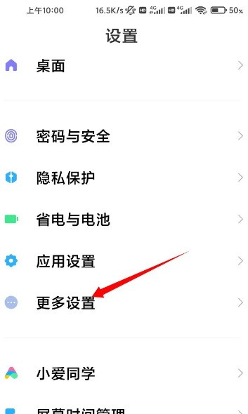 1、打開小米手機(jī)的設(shè)置,點(diǎn)擊更多設(shè)置的選項(xiàng)。