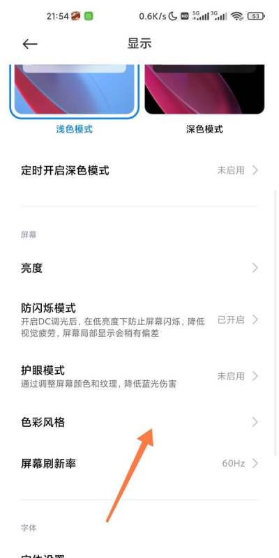 選擇色彩風(fēng)格在顯示設(shè)置頁面中,找到“色彩風(fēng)格”選項并點擊進入。