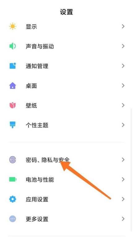 定位安全選項(xiàng):在設(shè)置頁(yè)面中,滑動(dòng)查找并點(diǎn)擊“密碼、隱私與安全”選項(xiàng),進(jìn)入安全相關(guān)設(shè)置。
