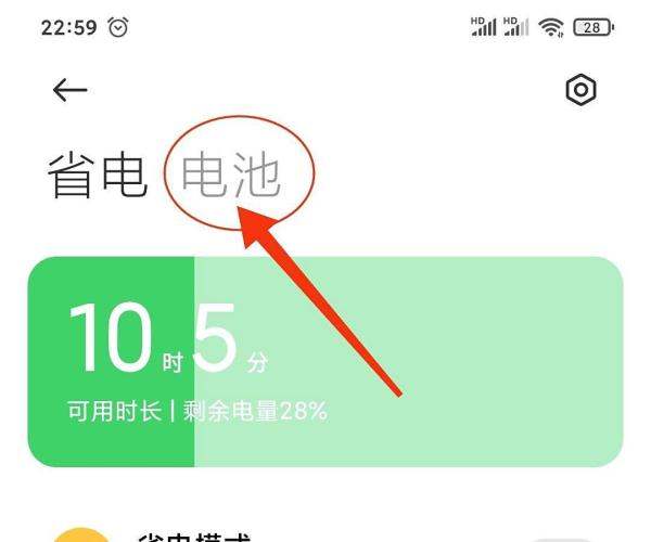 進入電池功能頁面:在省電頁面中點擊“電池”功能,查看電池相關設置選項。