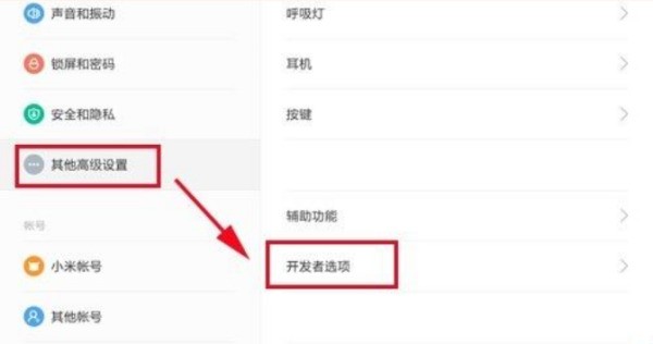 3、點擊設置界面左邊導航欄中的“其他高級設置”選項,再點擊打開窗口右邊的“開發者選項”。