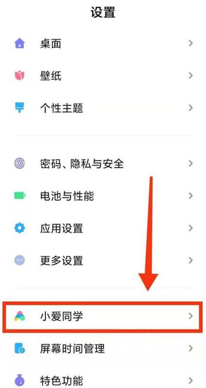 打開(kāi)手機(jī)設(shè)置,點(diǎn)擊“小愛(ài)同學(xué)”在系統(tǒng)設(shè)置界面中找到“小愛(ài)同學(xué)”入口并進(jìn)入。