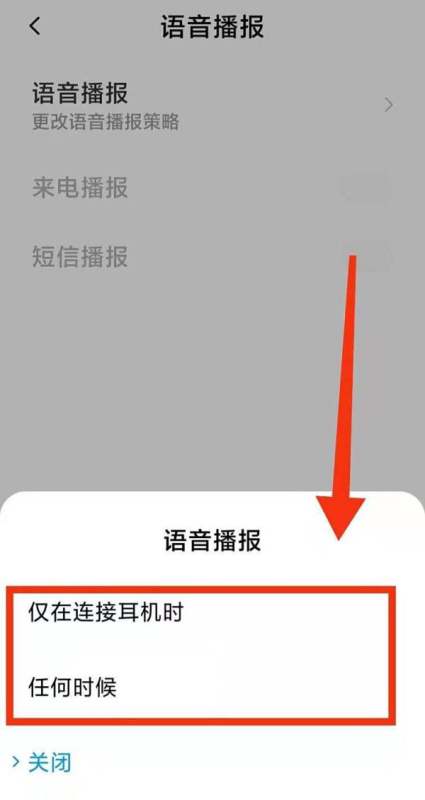 僅在連接耳機(jī)時(shí)播報(bào):僅當(dāng)耳機(jī)插入時(shí)觸發(fā)語(yǔ)音播報(bào)。