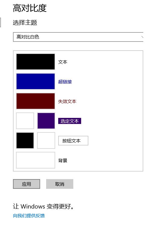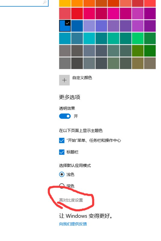 先說改主題:桌面右鍵→個性化→進主題頁面后點顏色和高對比度→換一個高對比度的主題,或者自己調個高對比的配色,應用一下就行。