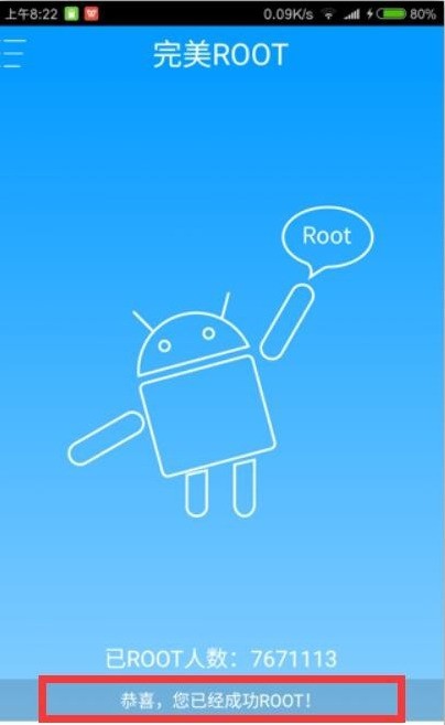 4.當顯示“恭喜,你已成功獲取ROOT”的提示時,表明已成功獲取小米5手機ROOT權限。