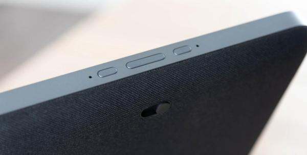 該設備搭載了10.1英寸大屏,分辨率達到1280×800,顯示效果細膩,屏幕素質不錯。屏幕頂部配備了115°超廣角攝像頭,可用于視頻通話和遠程看家等功能。機身后部還設有攝像頭開啟關閉的滑塊,可以物理遮擋攝像頭,保證居家隱私。