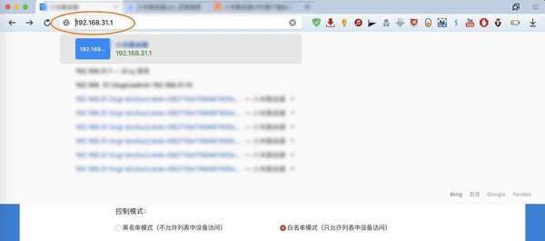 連接WiFi并訪問管理頁面確保電腦已連接小米路由器的WiFi網絡,打開瀏覽器,輸入管理地址【192.168.31.1】并回車。
