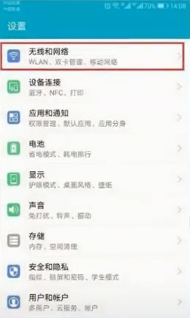 1、在我們的手機中打開“設置”,點擊“無線和網絡”。