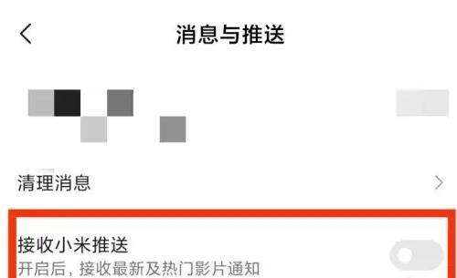 關閉推送開關:在“消息與推送”頁面中,找到“接受小米推送”選項,將其右側的開關滑動至關閉狀態(灰色表示關閉)。