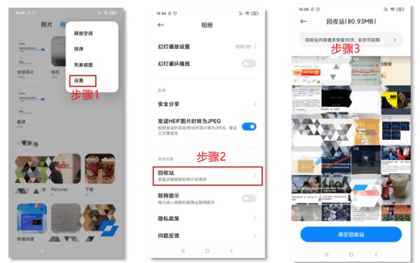 恢復(fù)小米云相冊刪除的照片,操作方法如下: