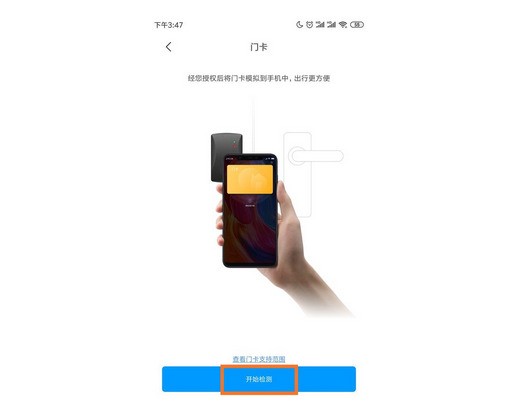 4、將門卡貼在手機背面的NFC天線上進行檢測,檢測模擬時不要移動門卡。