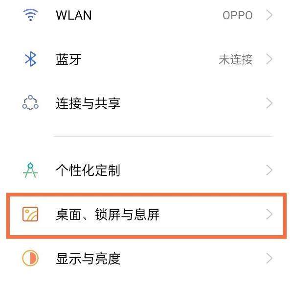 進入設(shè)置菜單打開手機【設(shè)置】,在菜單列表中找到并點擊【桌面、鎖屏與息屏】選項。