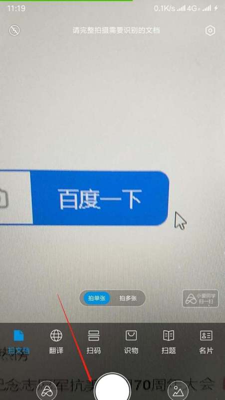 掃描圖片:將手機攝像頭對準需要掃描文字的圖片,確保圖片內容清晰完整地出現在屏幕中,然后點擊屏幕上的白色按鈕進行拍攝。