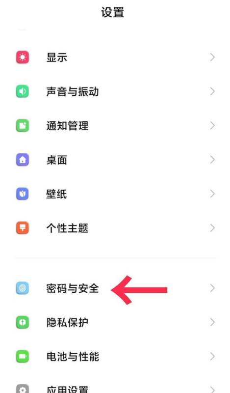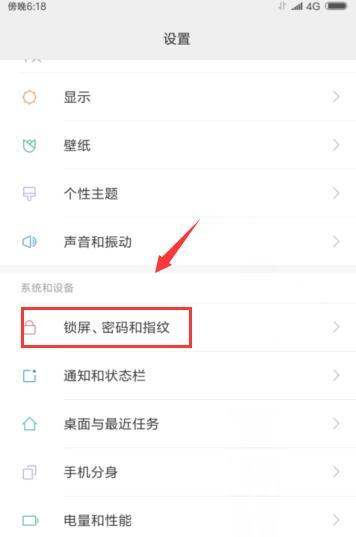 在設(shè)置界面中,通過上下滑動(dòng)屏幕查找,找到“鎖屏、密碼和指紋”選項(xiàng)并點(diǎn)擊,此選項(xiàng)用于管理手機(jī)的鎖屏方式、密碼設(shè)置以及指紋相關(guān)功能。